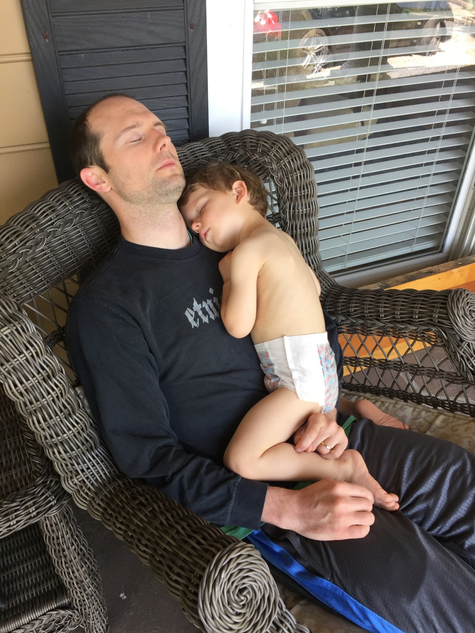 Last Mother’s Day, I rushed onto the porch to tell my husband and our son that it was time to hurry and get dressed for Mother’s Day lunch, and I found this peaceful scene.